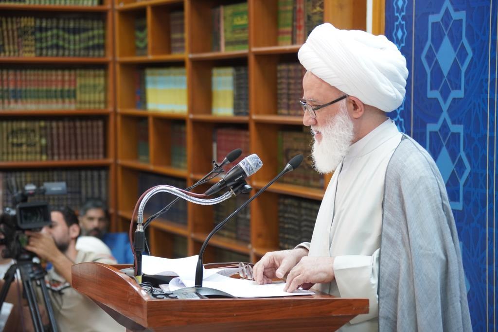 و تطرق سماحته (دام ظله) إلى کثره البیانات التی جاءت عن المعصومین (علیهم السلام) لتأکید هذه القضیه فی وقائع متعدده حتى أصبح ذلک واضحاً لدى الصحابه، وعُرف عن جماعه من صادقی الایمان منهم التشیع والولاء لعلی (علیه السلام) فی عهد رسول الله (صلى الله علیه وآله)، حتى إذا جاء یوم الغدیر قام النبی (صلى الله علیه و آله) أمام ذلک الملأ الذی بلغ عشرات الآلاف  لتبلیغ رساله الله تعالى، تتویجاً لتلک البیانات وإعلاناً واضحاً وصریحاً لما یریده (علیه السلام) من أن علیاً (علیه السلام) هو ولی أمر المسلمین جمیعاً من بعده، وبذلک أفشل مؤامرات الأعداء الداخلیین وهم المنافقون والحاسدون وطلاب الدنیا، والخارجیین من الأمم الأخرى کالروم والفرس المتحالفه للقضاء على الإسلام، مبیناً فقضیه الغدیر أهم قضایا الإسلام ؛ لأن الإسلام النقی الناصع حُفِظَ بها، وإن ولایه أهل البیت (علیهم السلام) ضمان لوحده الأمه، کما ورد فی خطبه السیده الزهراء (علیها السلام) (وجعل إمامتنا نظاماً للمله)