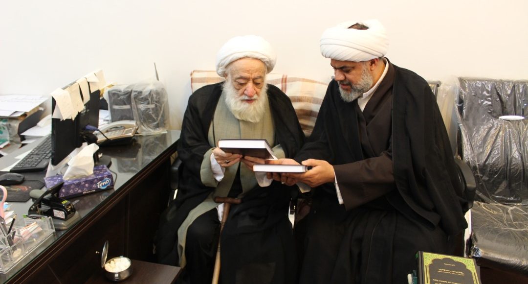 نماینده و مدیر دفتر آیت الله العظمی شیخ محمد یعقوبی در قم حاج شیخ قیس طایی با آیت الله جناتی یکی از مراجع و اساتید حوزه علمیه قم دیدار کرد.