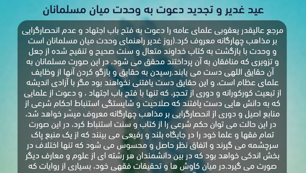 عید غدیر و تجدید دعوت به وحدت میان مسلمانان