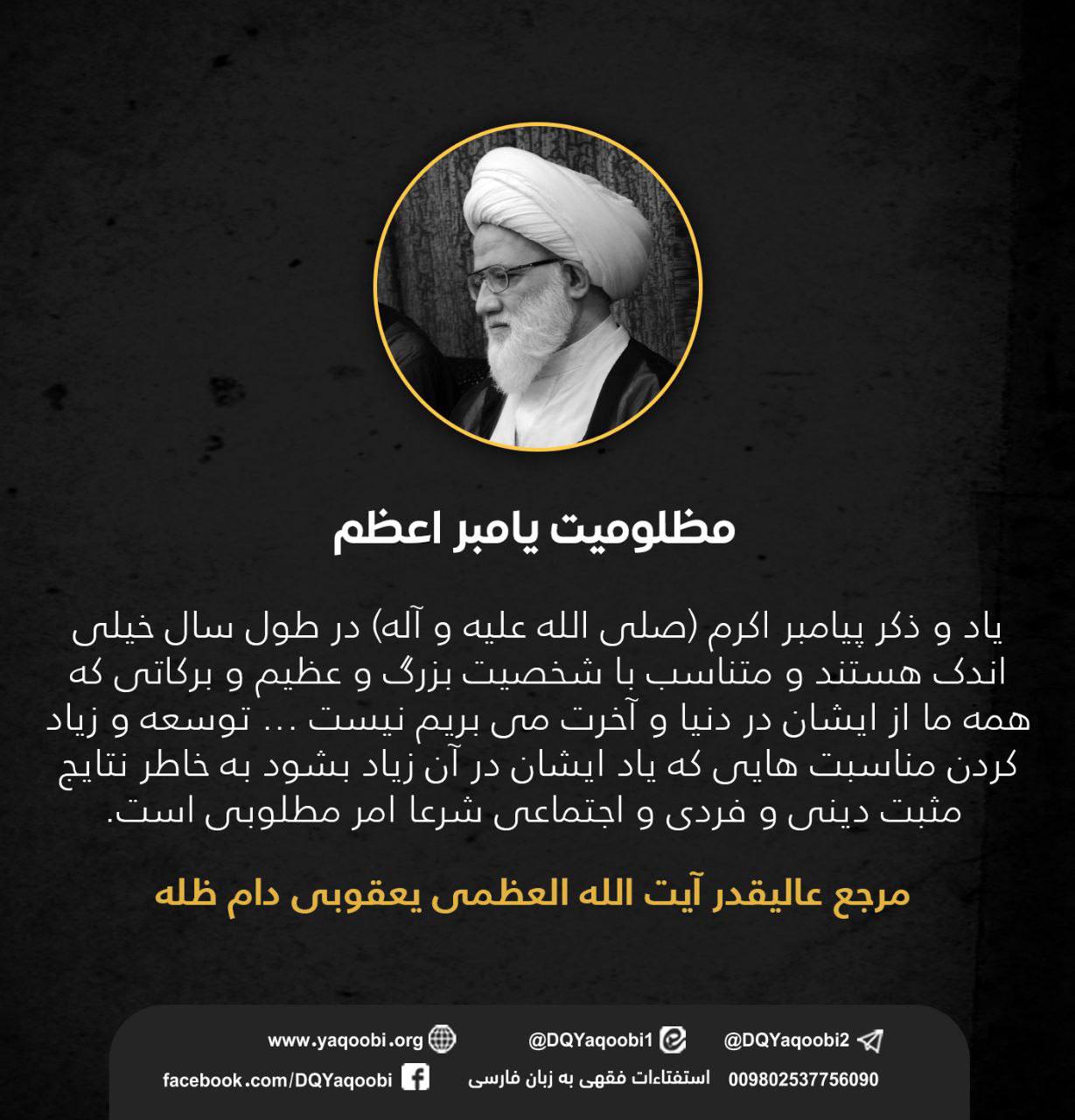 اخبار معظم لهرهنمودها و توصیه هاقبسی از مرجعیت عالیقدر قبسات إحیاء شعائر الرسول الاعظم من استشهاده الى ولادته قبسات إحیاء شعائر الرسول الاعظم من استشهاده الى ولادته به اشتراک گذاری