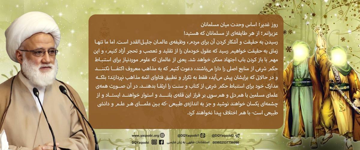 اخبار معظم لهرهنمودها و توصیه هاقبسی از مرجعیت عالیقدر قبسی از مرجعیت عالیقدر روز غدیر عیدالله الاعظم قبسی از مرجعیت عالیقدر روز غدیر عیدالله الاعظم به اشتراک گذاری