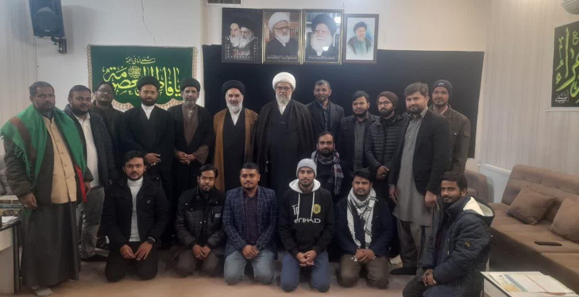 وفد من طلبه شمال الهند فی ضیافه مکتب المرجعیه المبارکه فی قم المقدسه حیث کان فی استقبال الوفد ممثل المرجعیه المبارکه فی ایران فضیله الحاج الشیخ قیس الطائی والقیت محاضره عن اهمیه التبلیغ الاسلامی ودعوه البشریه الى دین الله تعالى والتمسک باخلاق وسیره اهل البیت صلوات الله وسلامه علیهم