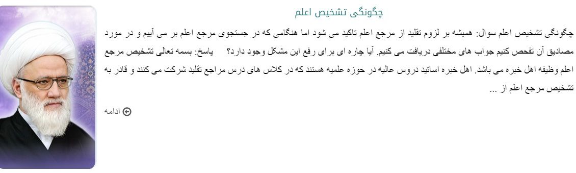 سوال: همیشه بر لزوم تقلید از مرجع اعلم تاکید می شود اما هنگامی که در جستجوی مرجع اعلم بر می آییم و در مورد مصادیق آن تفحص کنیم جواب های مختلفی دریافت می کنیم. آیا چاره ای برای رفع این مشکل وجود دارد؟