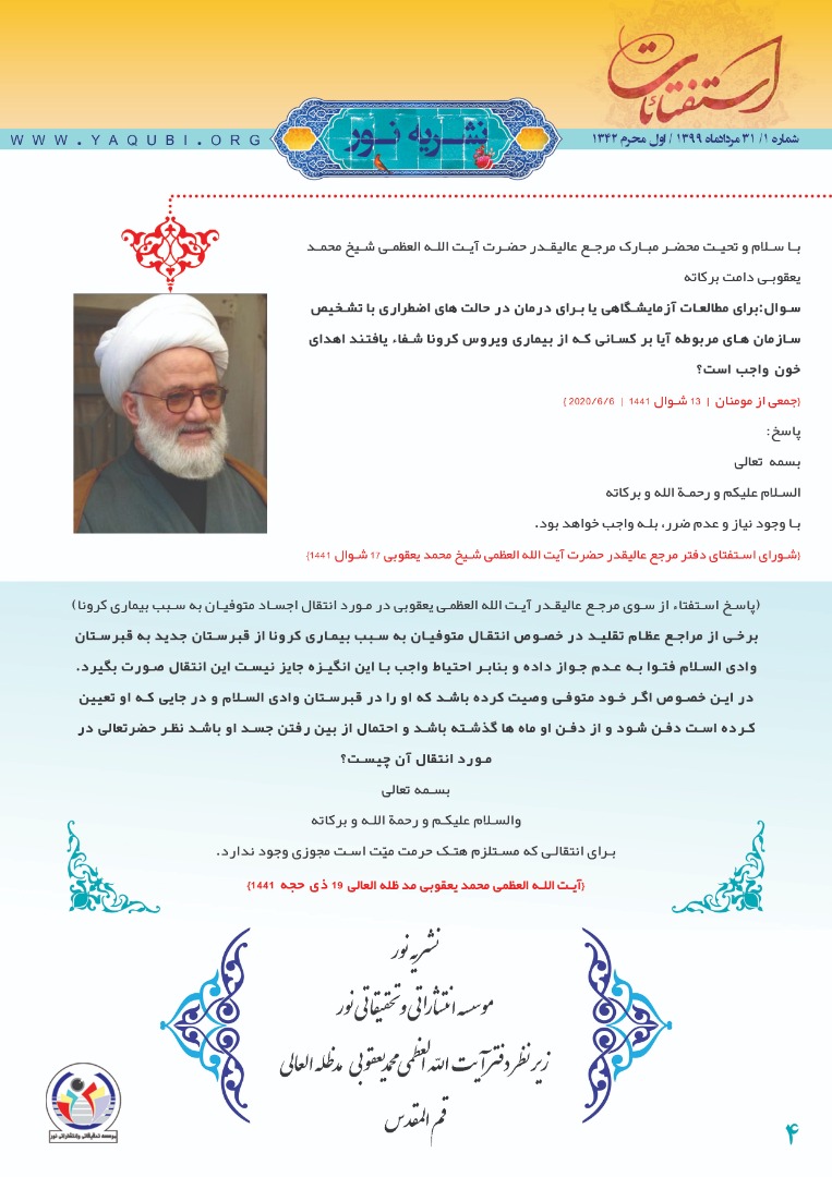 موسسه تحقیقاتی و انتشاراتی نور، نشریه نور را به زبان فارسی زیر نظر دفتر مرجع عالیقدر حضرت آیت الله العظمی یعقوبی در قم مقدس منتشر کرد.