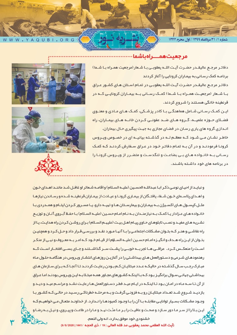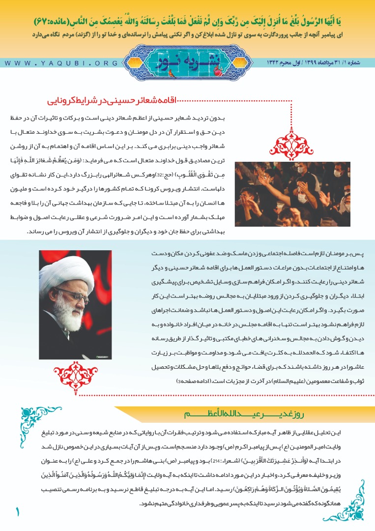 انتشار اولین شماره نشریه نور به زبان فارسی به صورت آزمایشی از دفتر مرجع عالیقدر حضرت آیت الله العظمی یعقوبی در قم مقدس