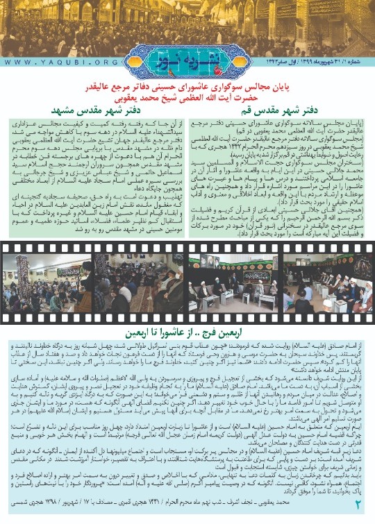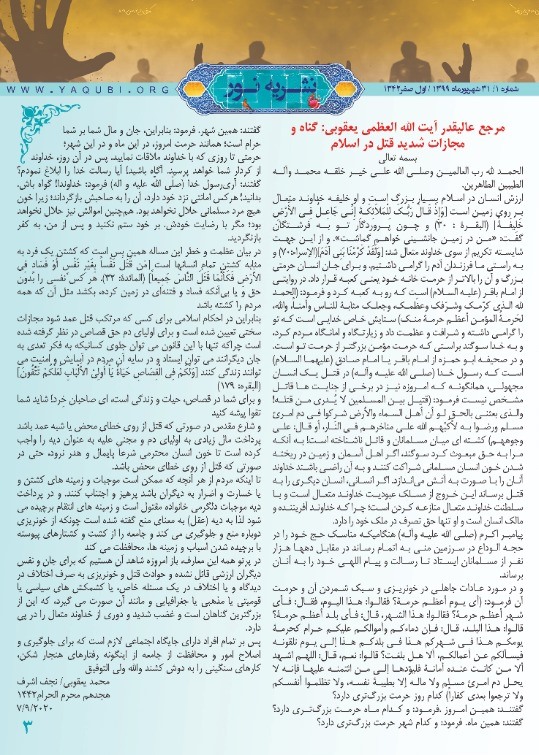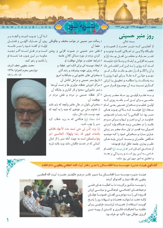 موسسه تحقیقاتی و انتشاراتی نور زیر نظر دفتر مرجع عالیقدر حضرت آیت الله العظمی شیخ محمد یعقوبی شماره یک نشریه نور را منتشر کرد. (شماره یک نشریه نور به زبان فارسی ماه صفر ۱۴۴۲ هـ)