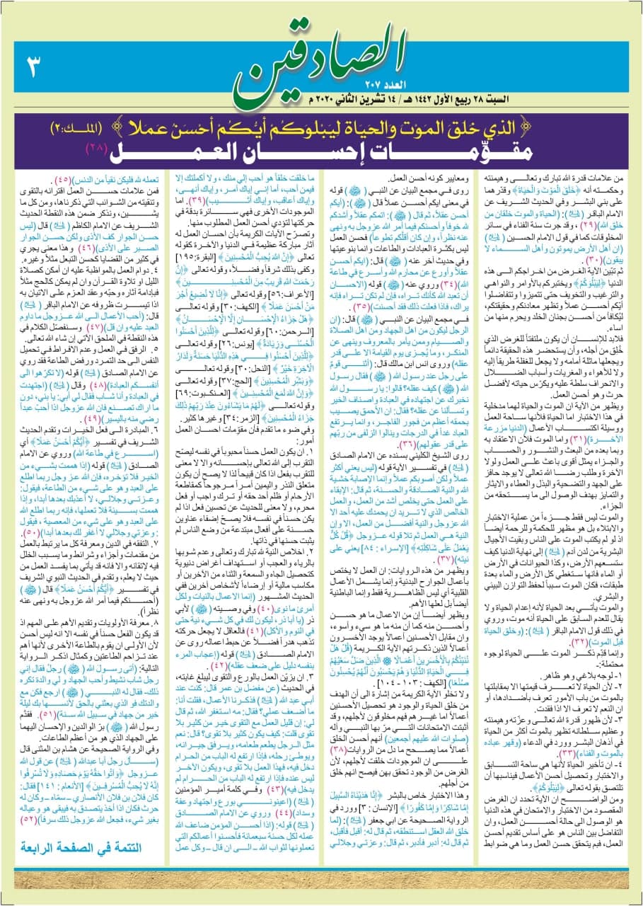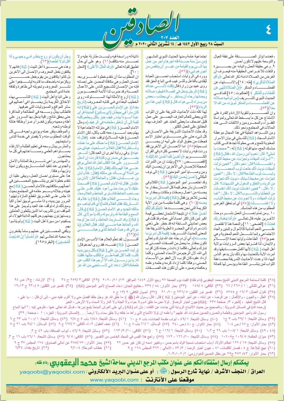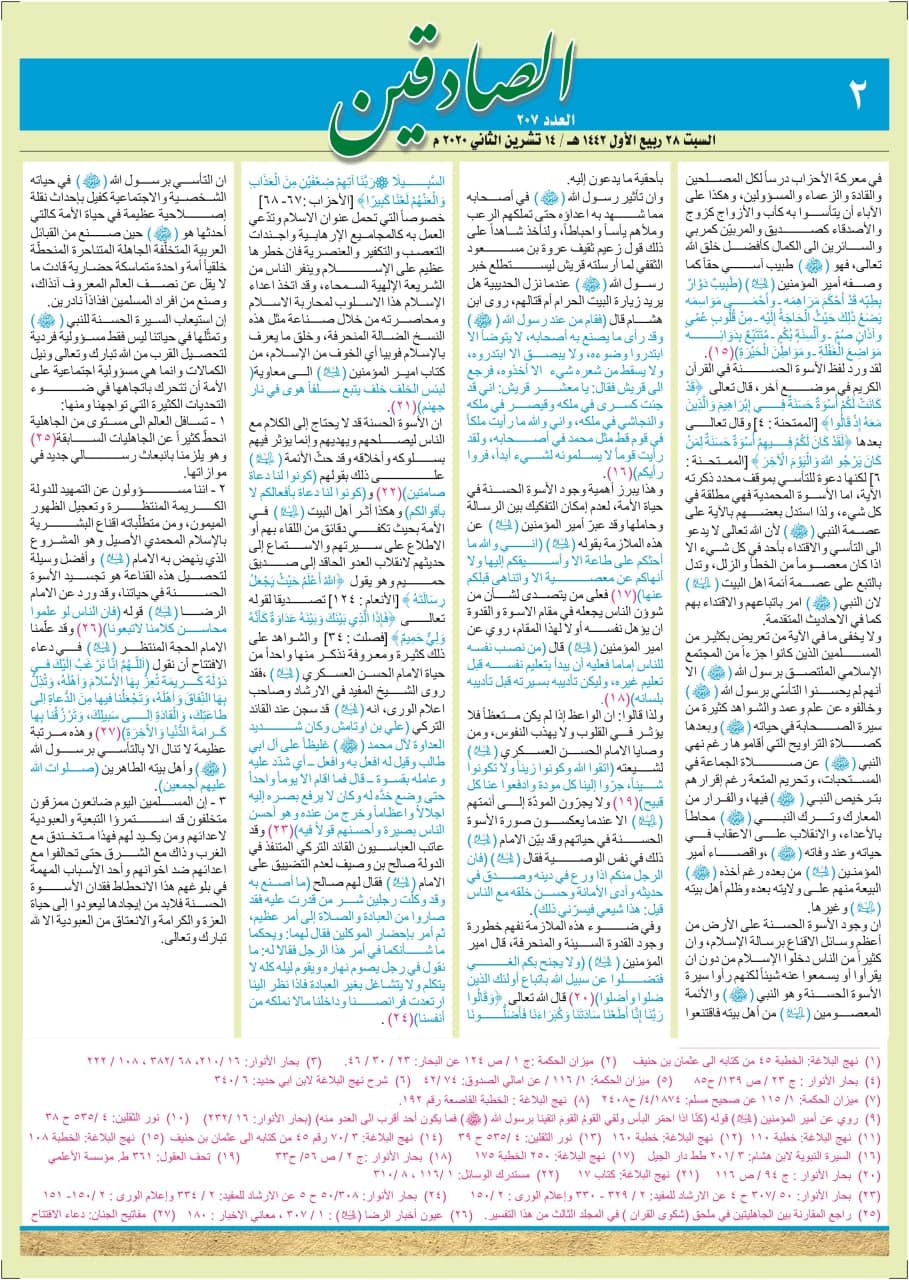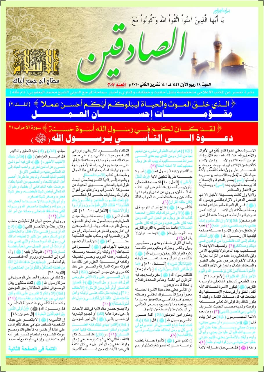 رهنمودها و توصیه ها انتشار شماره ۲۰۷ جدید نشریه صادقین به زبان عربی از دفتر تبلیغات مرکزی در نجف اشرف ۲۸-ربیع الاول-۱۴۴۲ انتشار شماره ۲۰۷ جدید نشریه صادقین به زبان عربی از دفتر تبلیغات مرکزی در نجف اشرف ۲۸-ربیع الاول-۱۴۴۲ به اشتراک گذاری