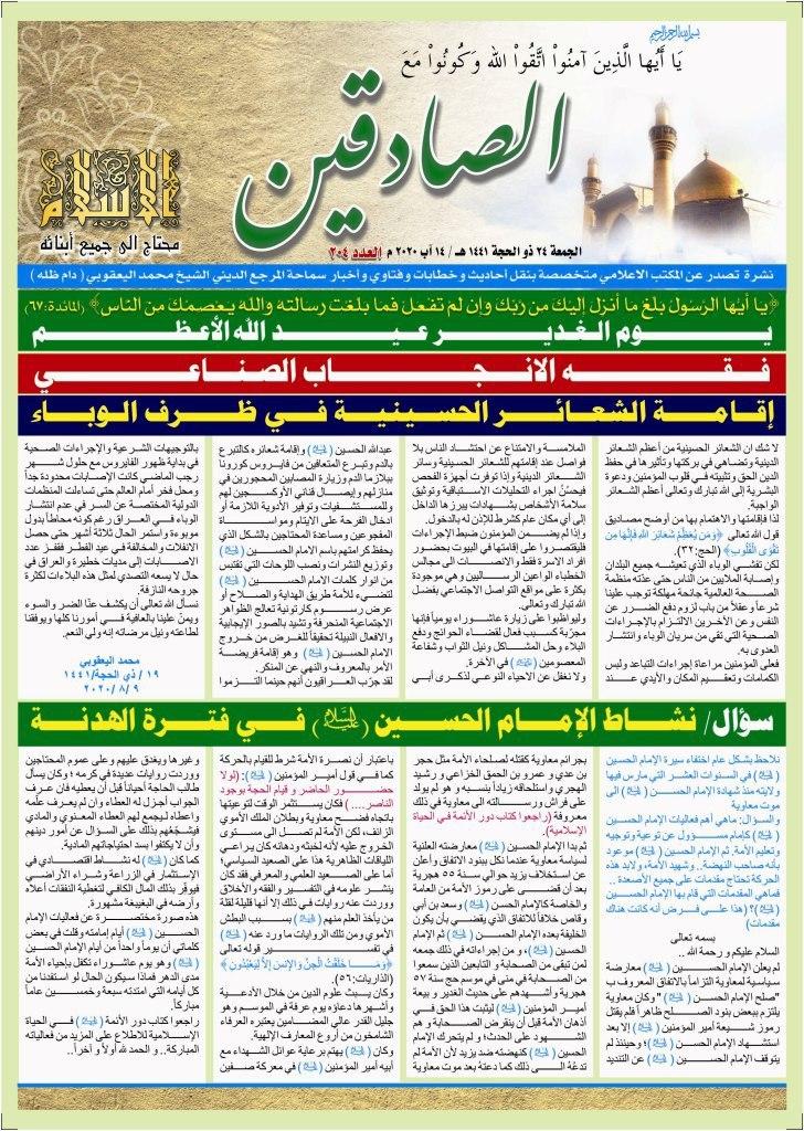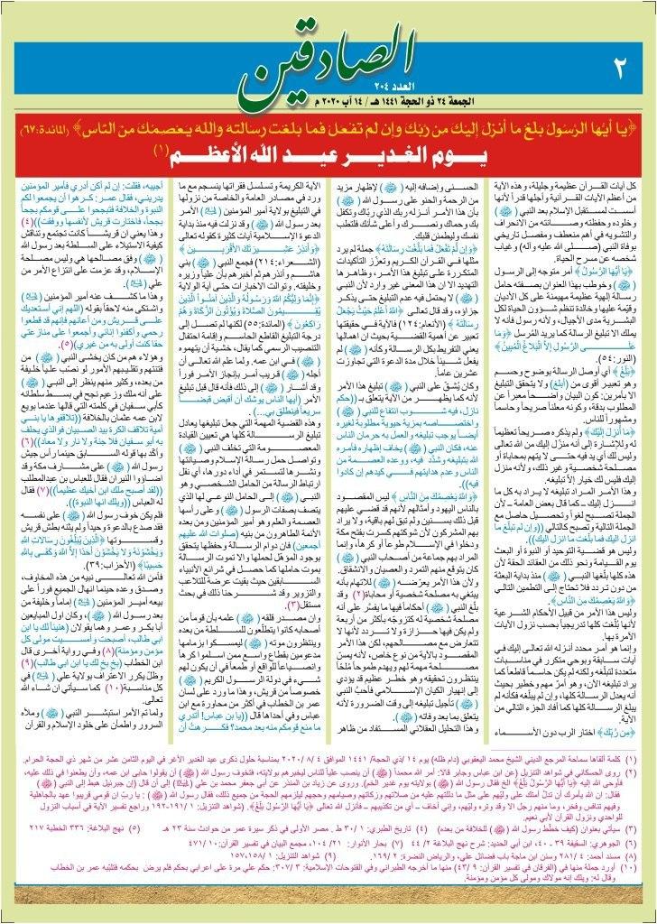 رهنمودها و توصیه ها انتشار شماره ۲۰۴ جدید نشریه صادقین به زبان عربی از دفتر تبلیغات مرکزی در نجف اشرف ۱۴-ذو الحجه-۱۴۴۱ انتشار شماره ۲۰۴ جدید نشریه صادقین به زبان عربی از دفتر تبلیغات مرکزی در نجف اشرف ۱۴-ذو الحجه-۱۴۴۱ به اشتراک گذاری