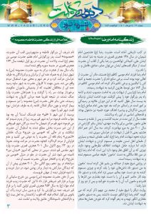 و درصفحه سوم این نشریه، به مناسبت هفته کرامت و میلاد پربرکت حضرت امام رضا (ع) و حضرت معصومه (س) به زندگی این دو بزرگوار به طور خلاصه اشاره شده است.