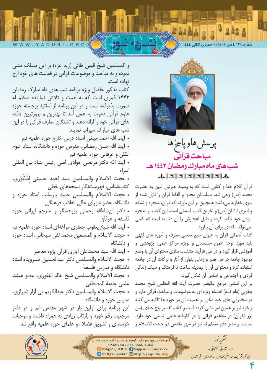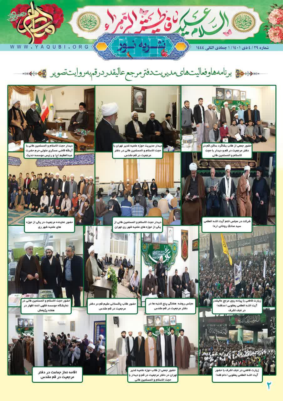موسسه تحقیقاتی و انتشاراتی نور زیر نظر دفتر مرجع عالیقدر حضرت آیت الله العظمی شیخ محمد یعقوبی شماره ۲۹ نشریه نور به زبان فارسی را منتشر کرد.