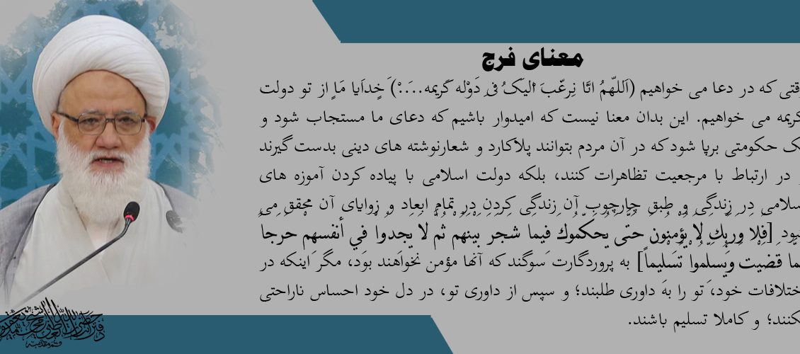 معنای فرج وقتی که در دعا می خواهیم (اَللّهُمَّ اِنّا نَرْغَبُ اِلَیْکَ فى دَوْلَهٍ کَریمَهٍ….)