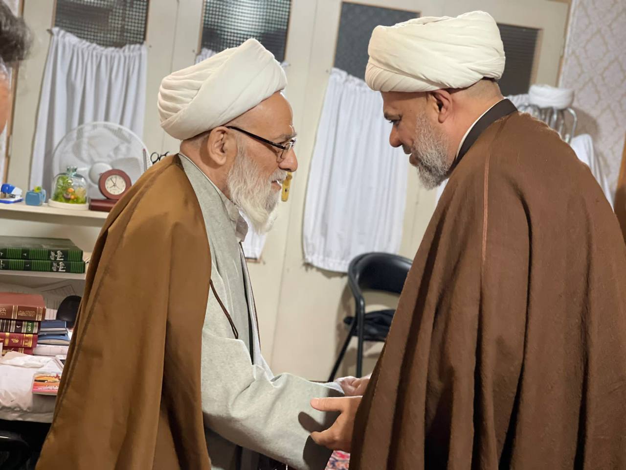 ممثل سماحه ایه الله العظمى المرجع الشیخ محمد الیعقوبی (دام ظله) فی قم المقدسه فضیله الحاج الشیخ قیس الطائی یزور ایه الله العظمى الشیخ الکرامی فی منزله برفقه سماحه الاخ والصدیق الحاج الشیخ علی خلیفه عمید جامعه الصدر الدینیه فی النجف الاشرف.